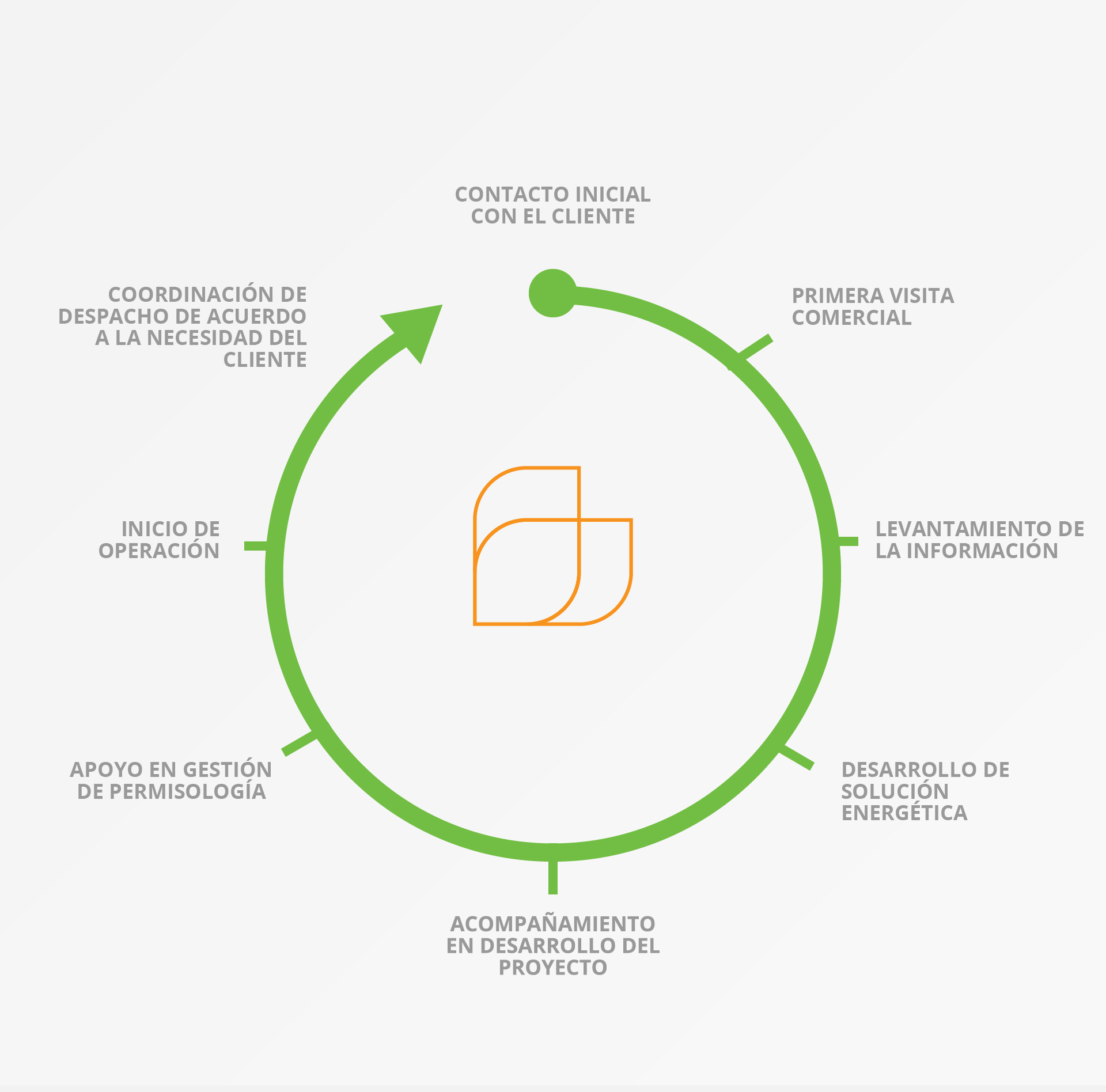 Acompañamiento completo desde la consulta y recopilación de información, hasta la instalación, operación y mantenimiento de la solución. Servicios de asesoría y soluciones energéticas a la medida en un solo lugar